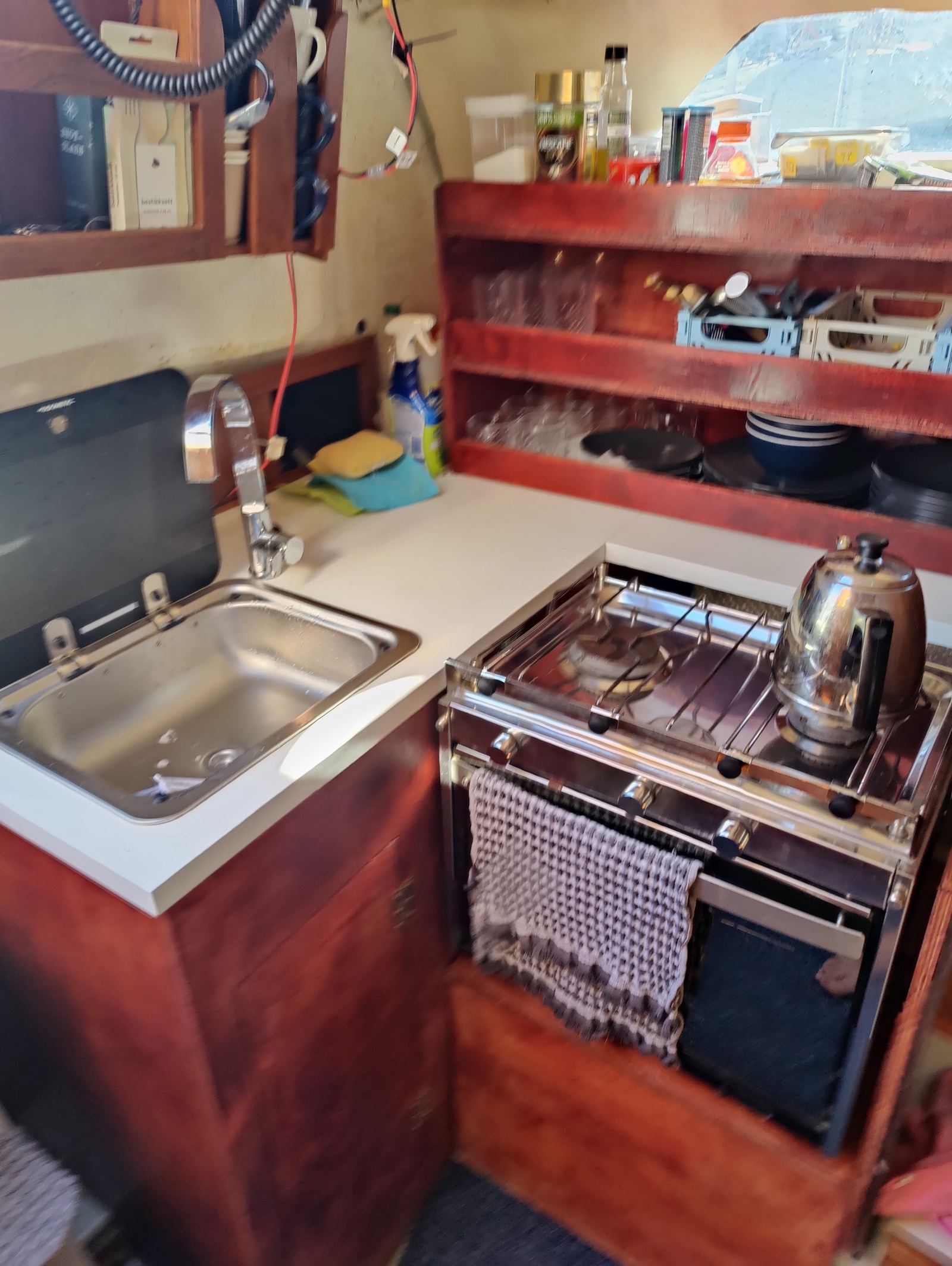 🍴 Comfort: Diesel heater, fridge (2022), pressurized water, gas stove with oven, new toilet (2023), teak cockpit, cockpit tent