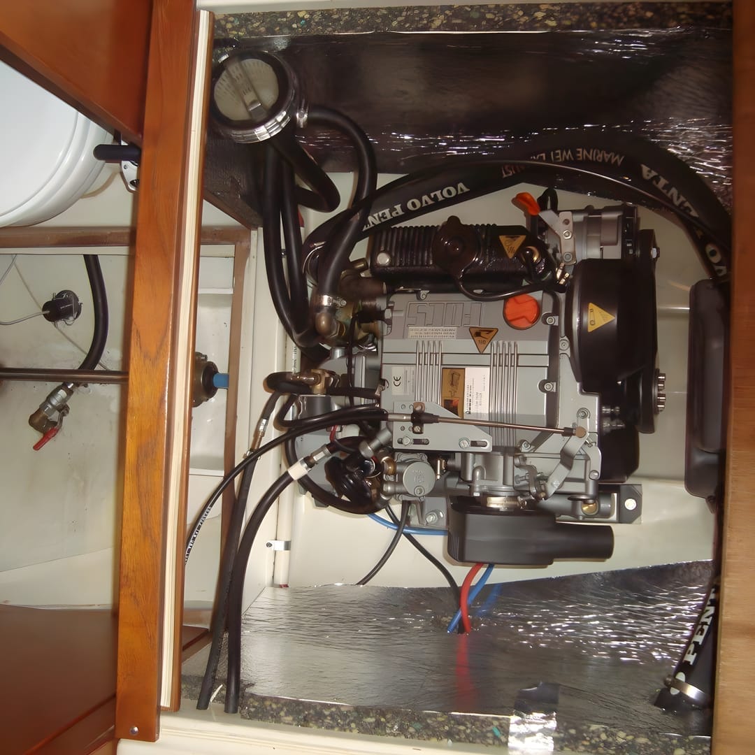 This boat features a 20 hp Lombardini diesel, installed in 2010 and freshwater-cooled. The engine has documented service and starts reliably, even in cold weather. The propeller shaft setup is practical for long-term use.