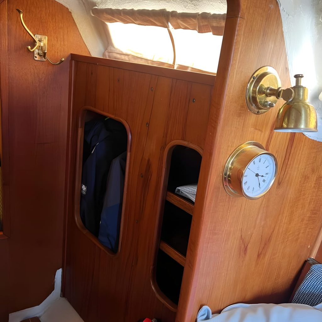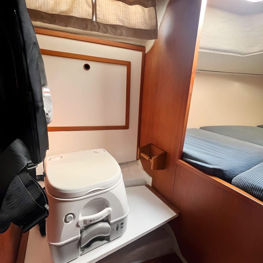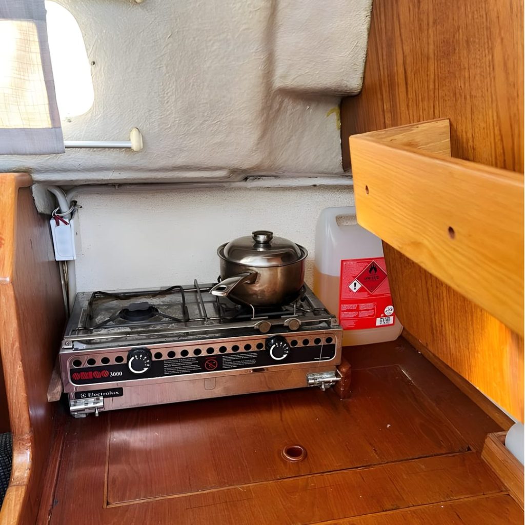 🍴 Comfort: fridge, stove with 2 burners, diesel heater, shower inside and aft, hot water, toilet with holding tank
