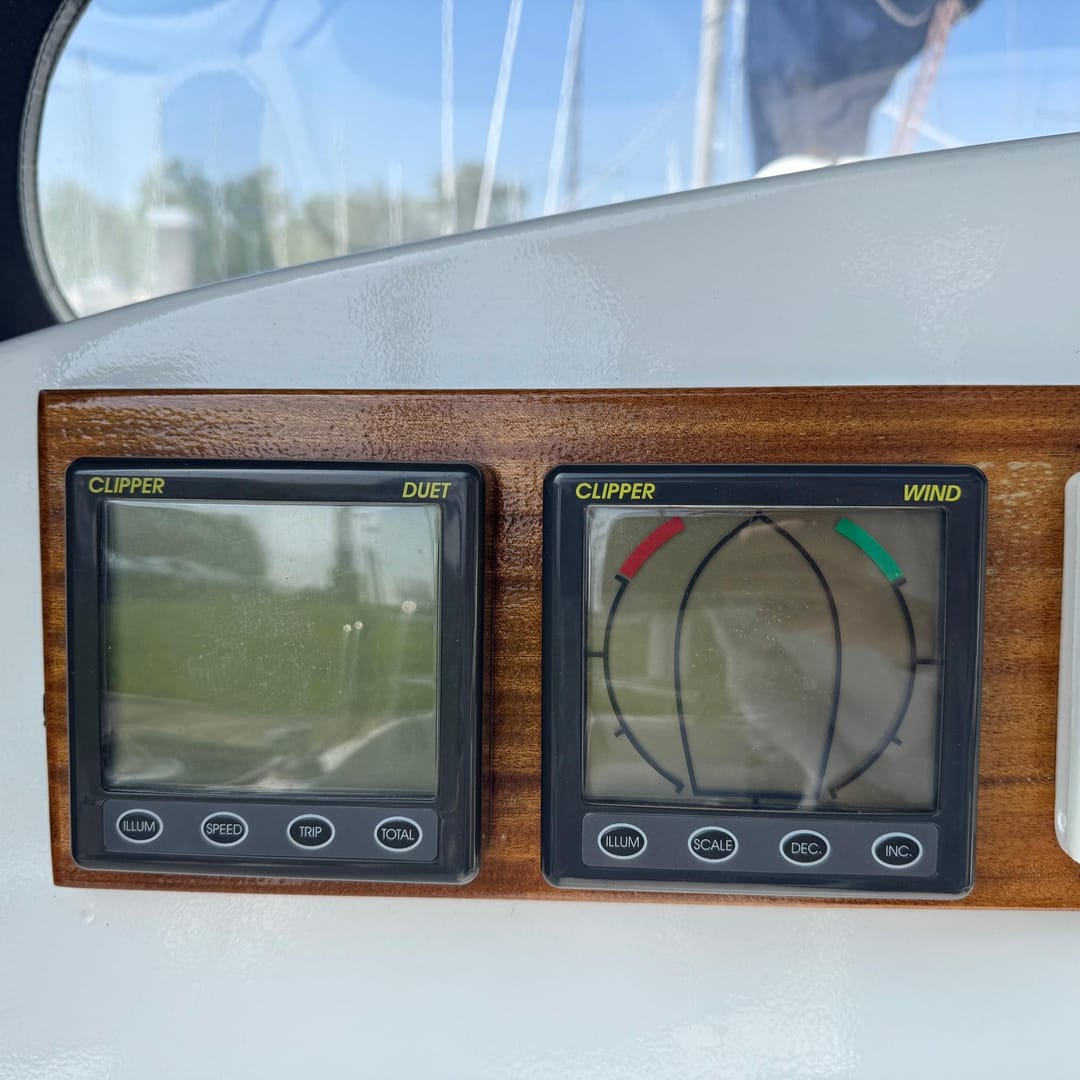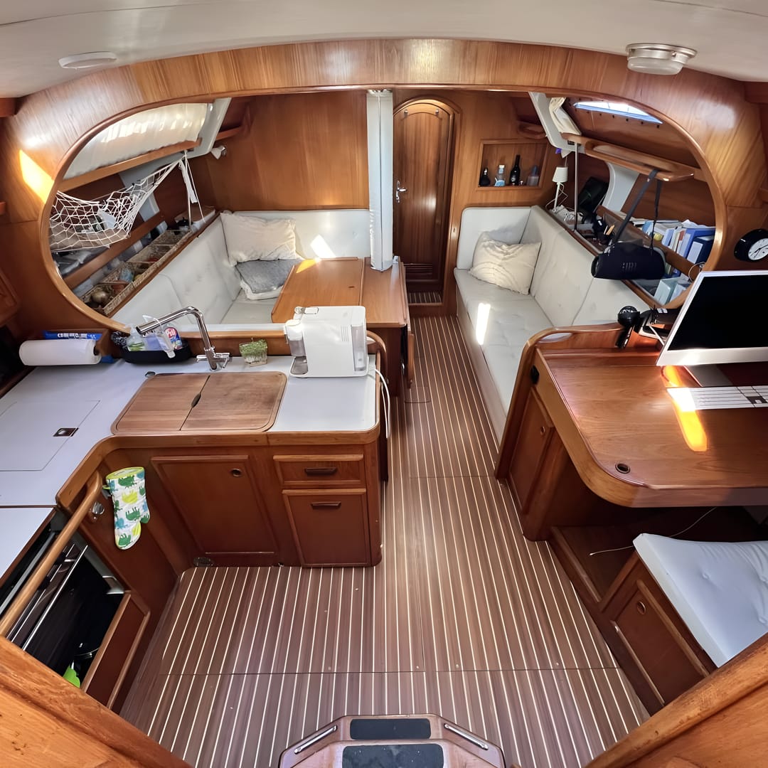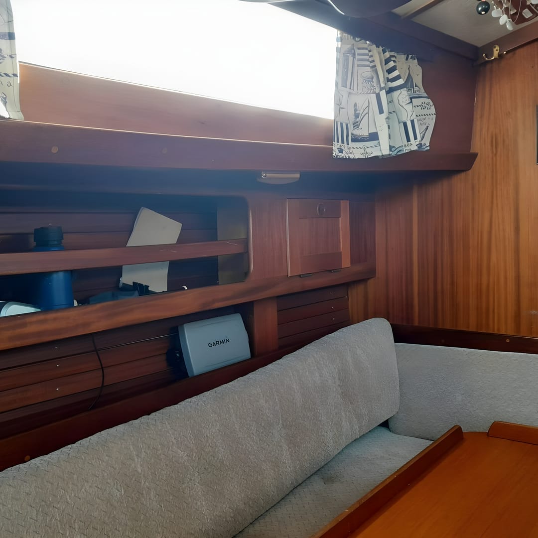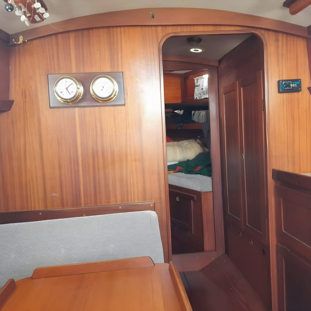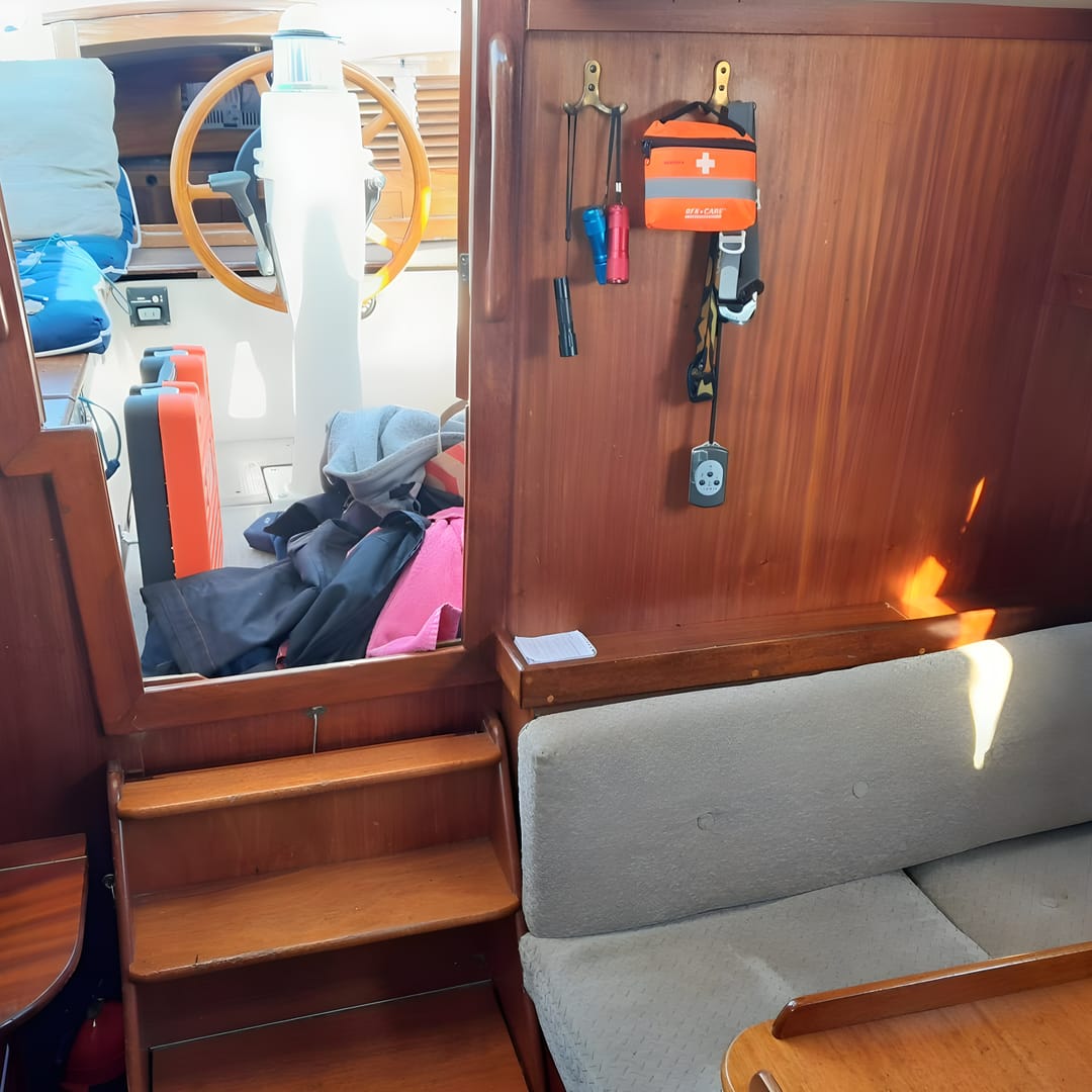 📡 Navigation: Depth meter, speed log, wind instruments, compass, VHF, wind vane autopilot