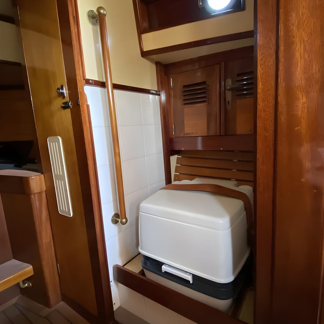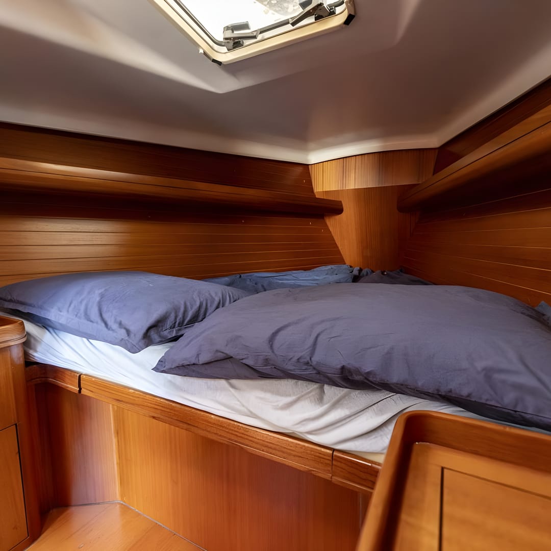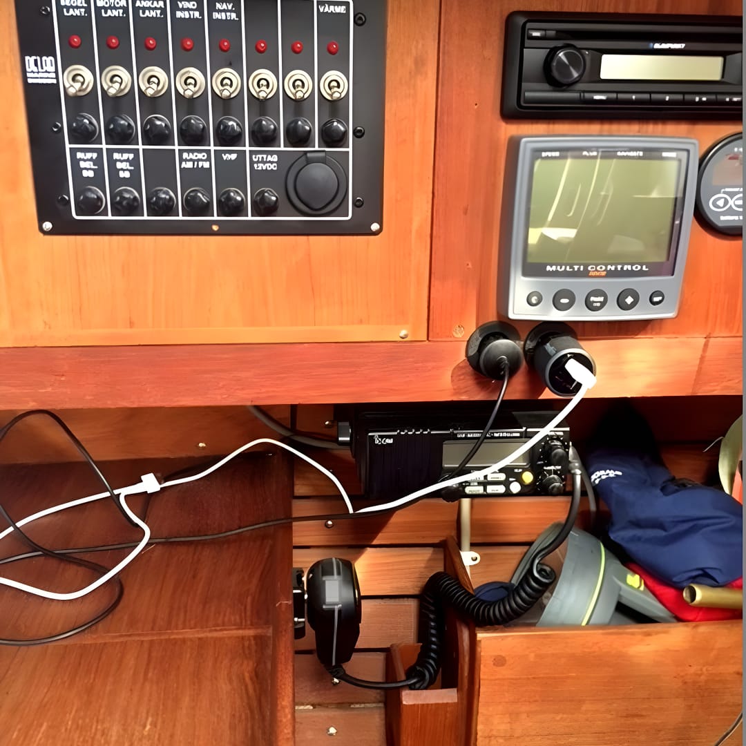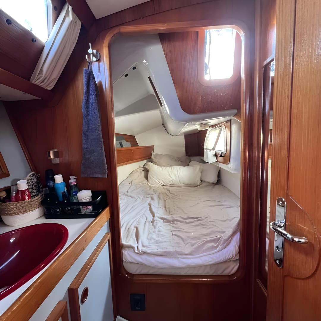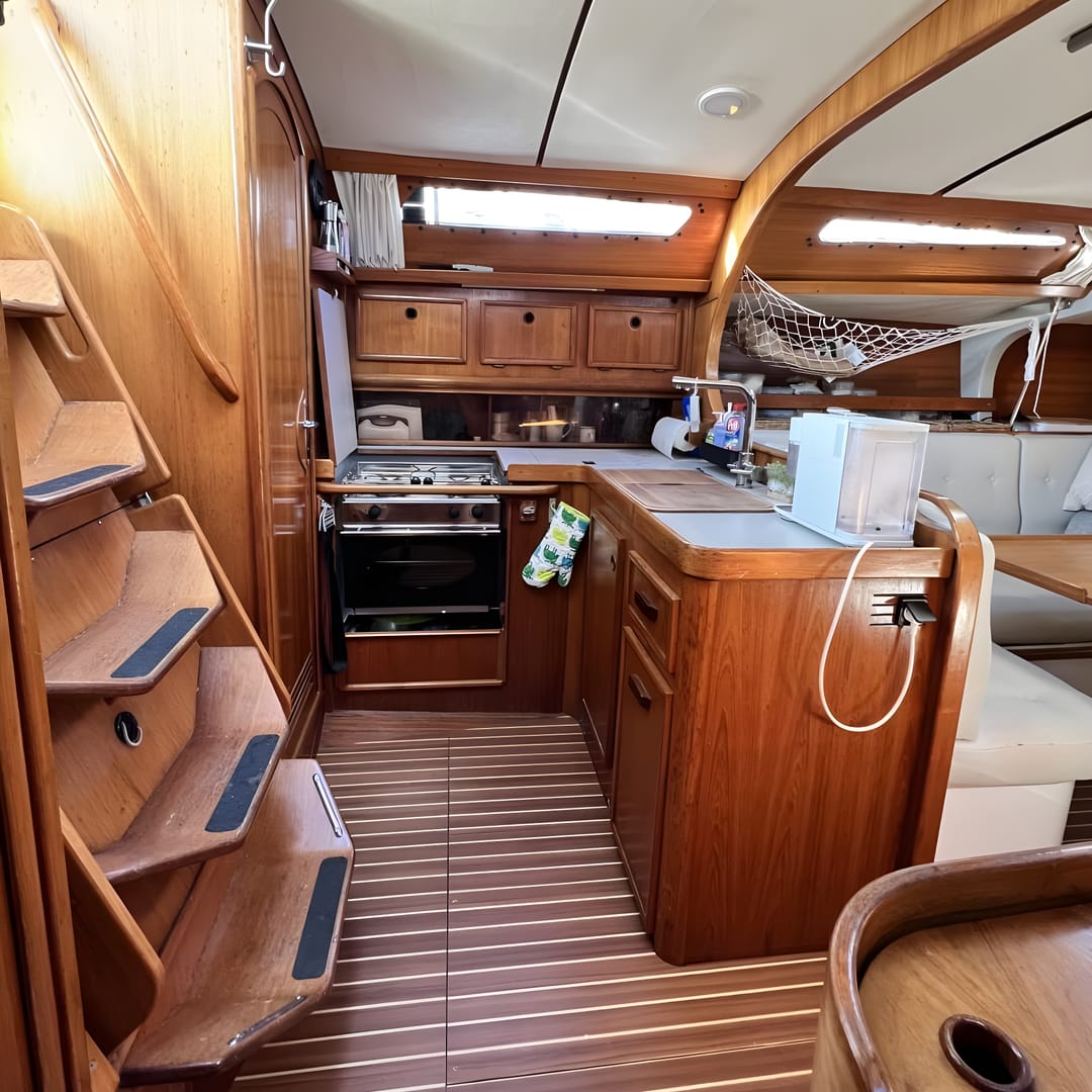 📡 Navigation: Depth meter, speed log, wind instruments, compass, VHF, wind vane autopilot