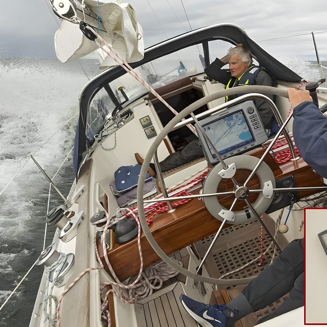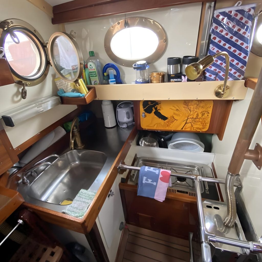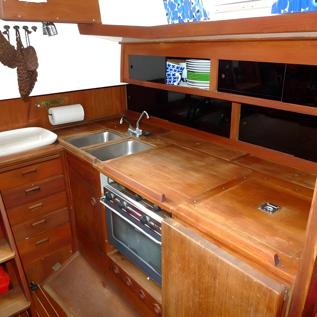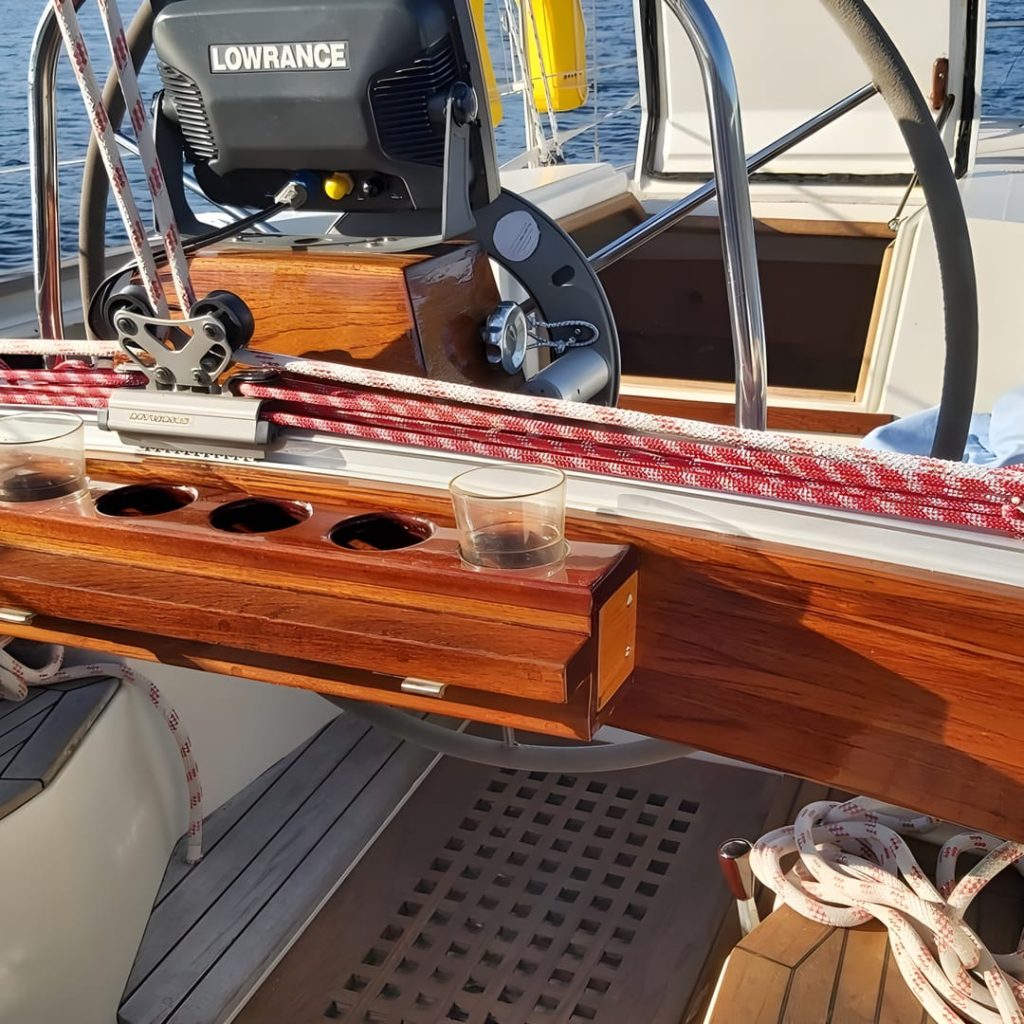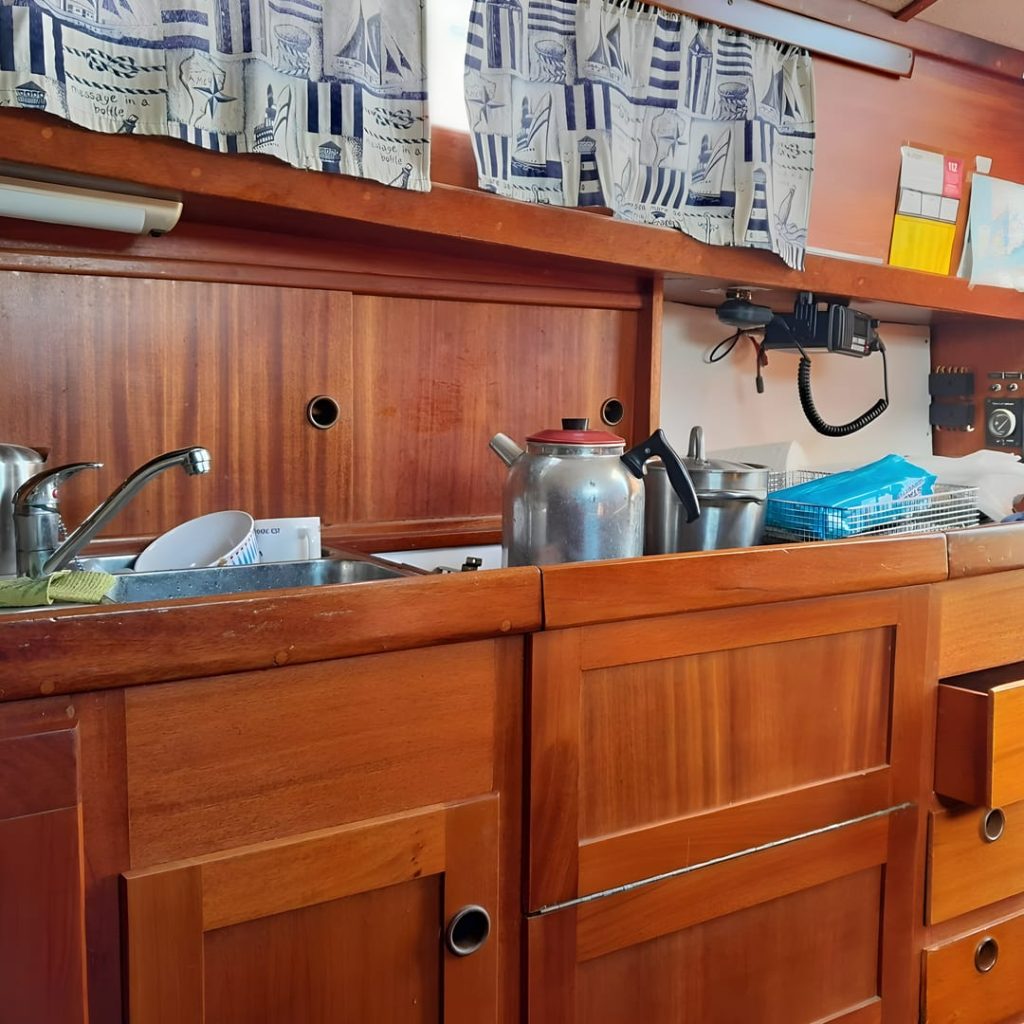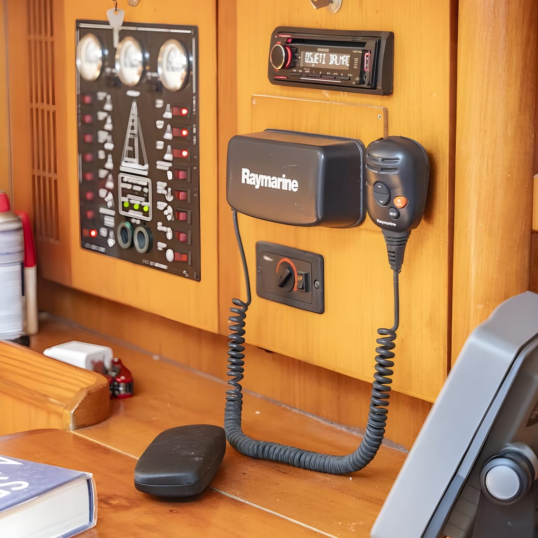 📡 Navigation: Depth meter, speed log, wind instruments, compass, VHF, wind vane autopilot