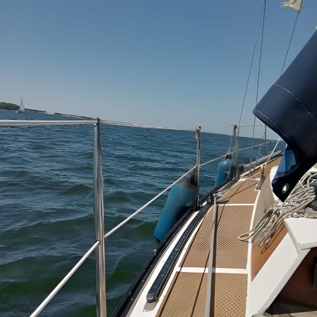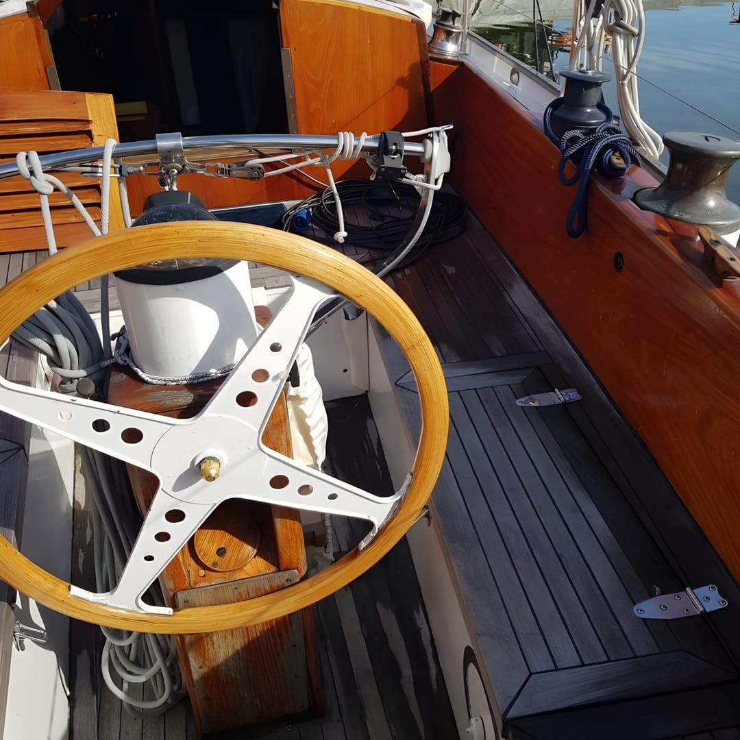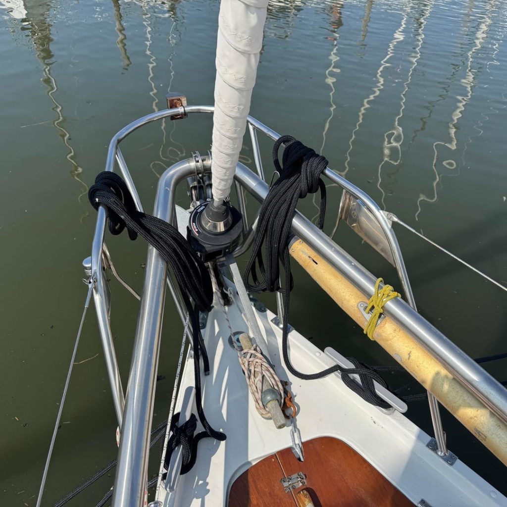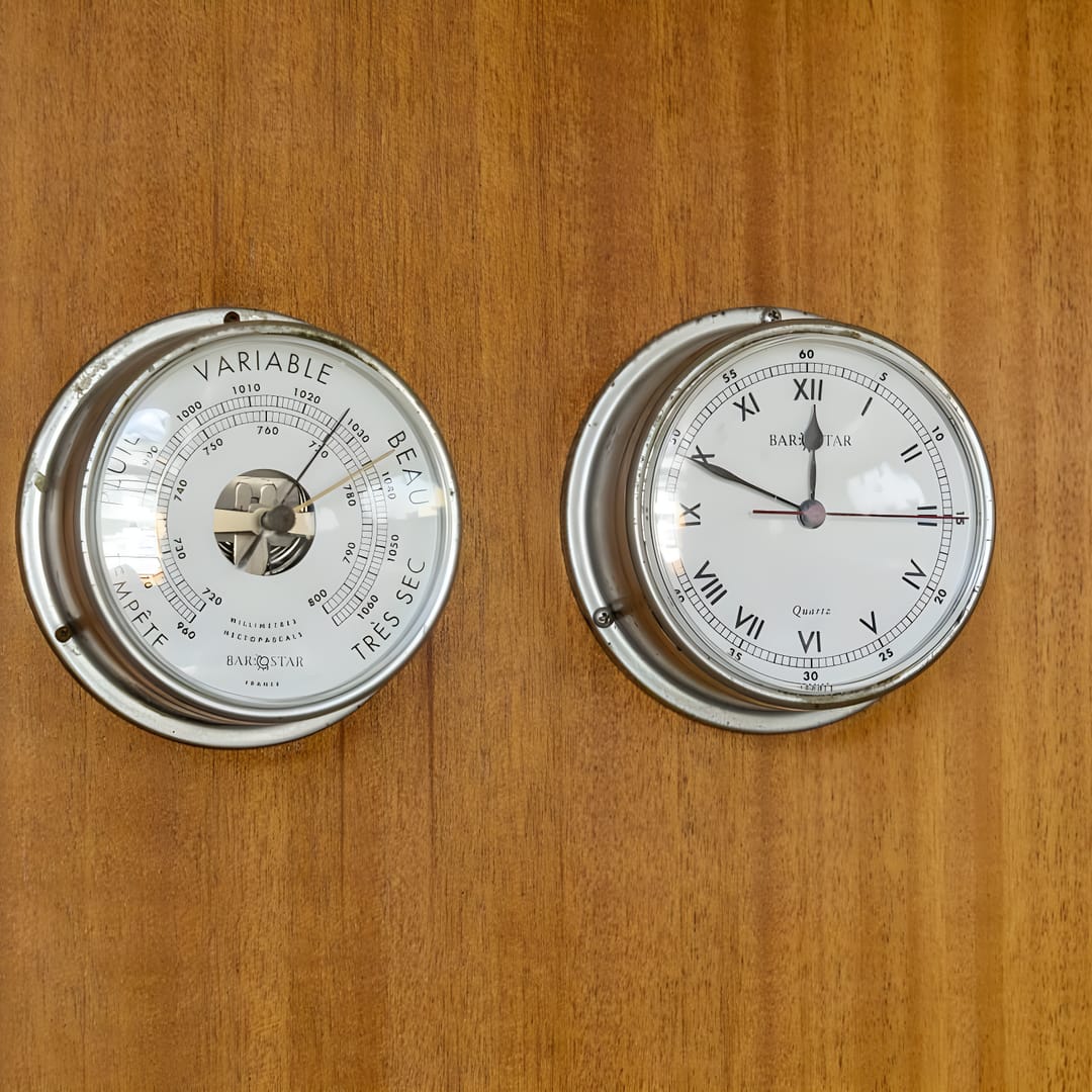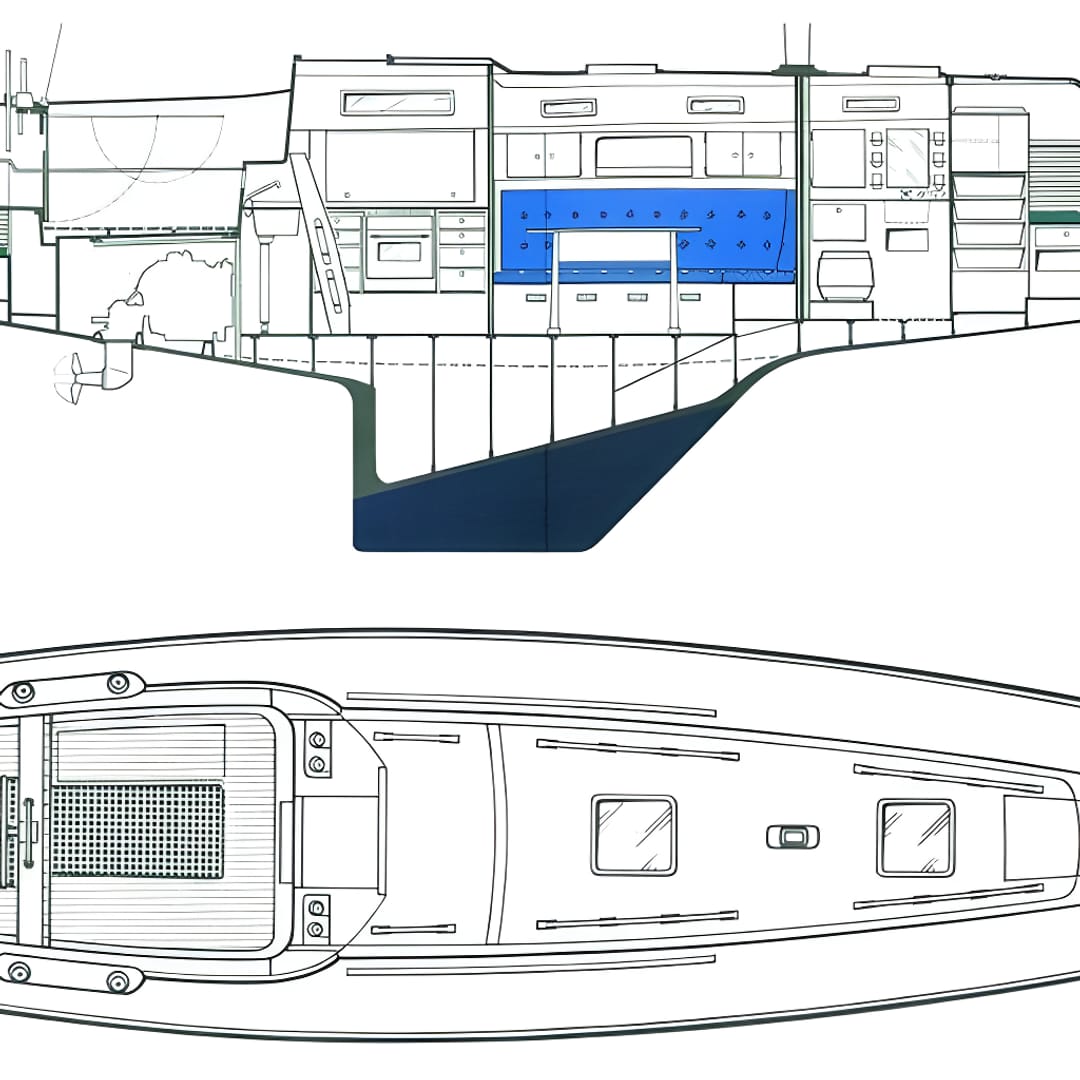 📡 Navigation: Depth meter, speed log, wind instruments, compass, VHF, wind vane autopilot