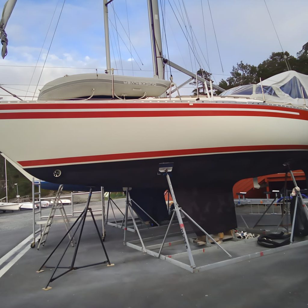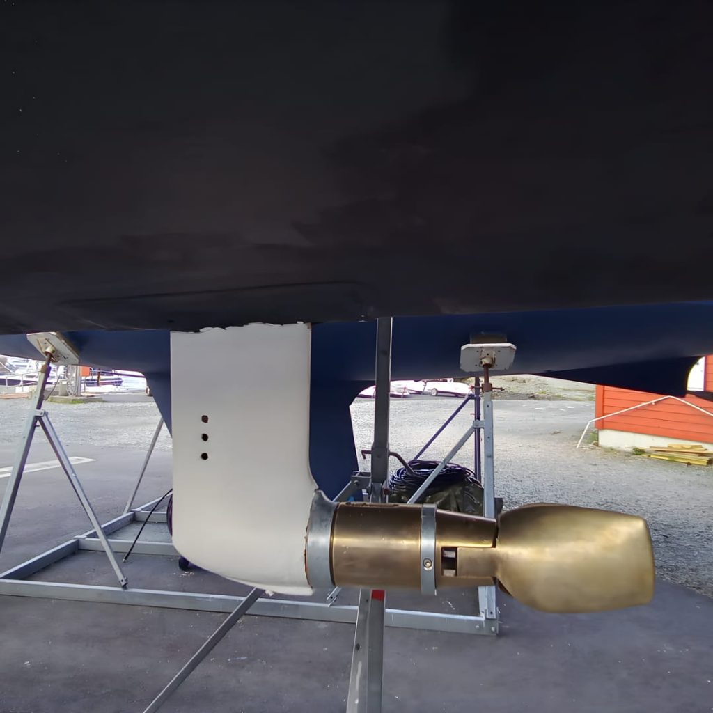 The Yanmar diesel engine received a major overhaul in 2009 and a rebuilt gearbox in 2015. A two-blade folding propeller is fitted for better sailing performance.