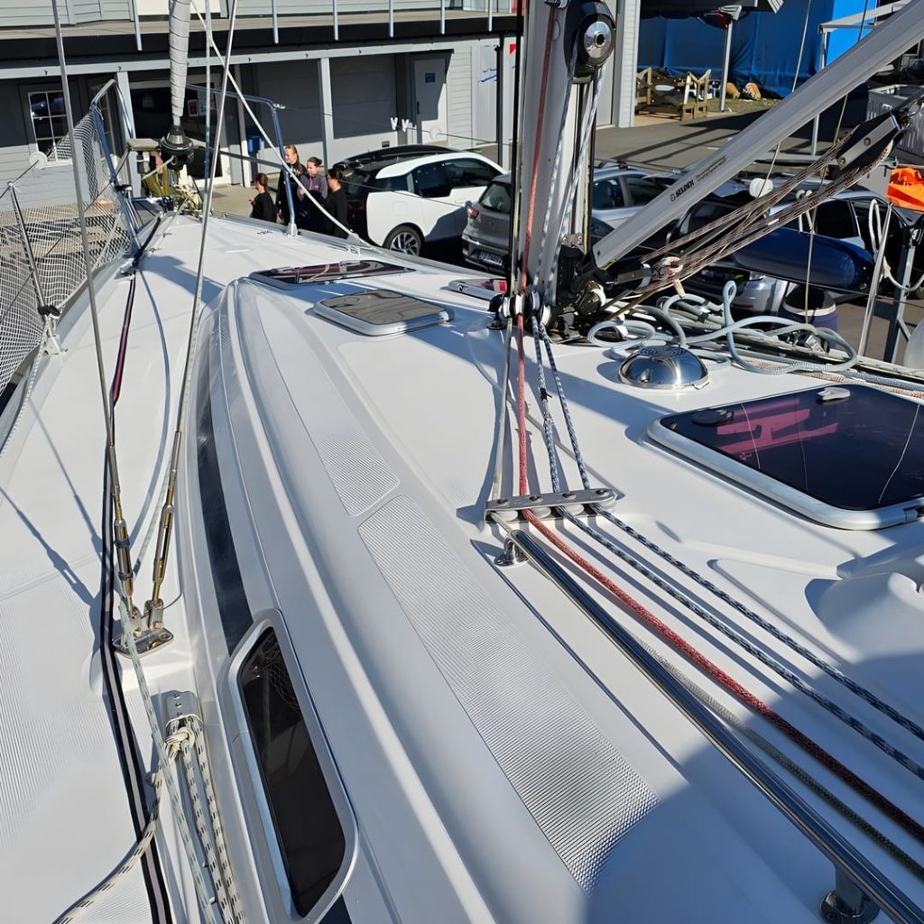 ⛵ Sails: Mainsail (2019), self-tacking jib (2019), spinnaker, lazy jacks, sprayhood, sail covers