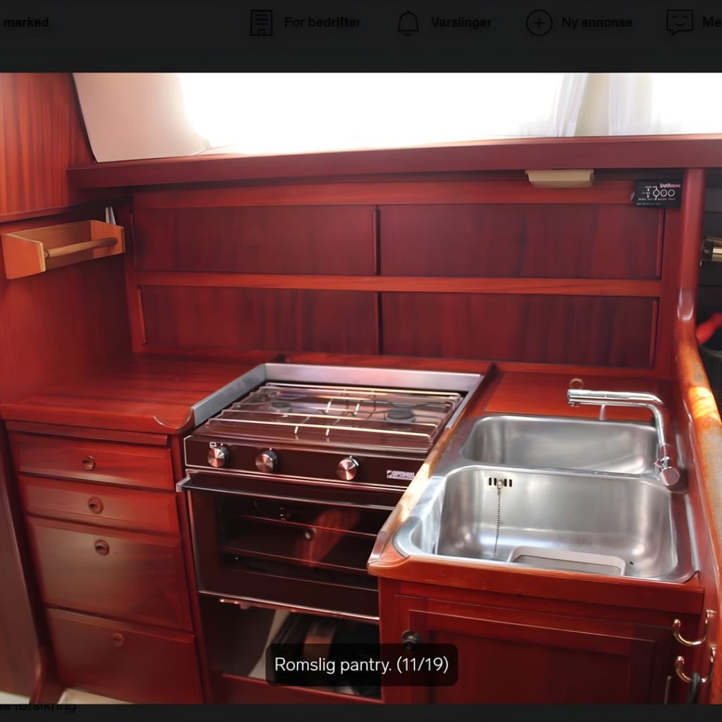 🍴 Comfort: 2-burner gas stove, fridge with freezer, toilet with holding tank, 100-liter water, diesel heater, swim platform with ladder