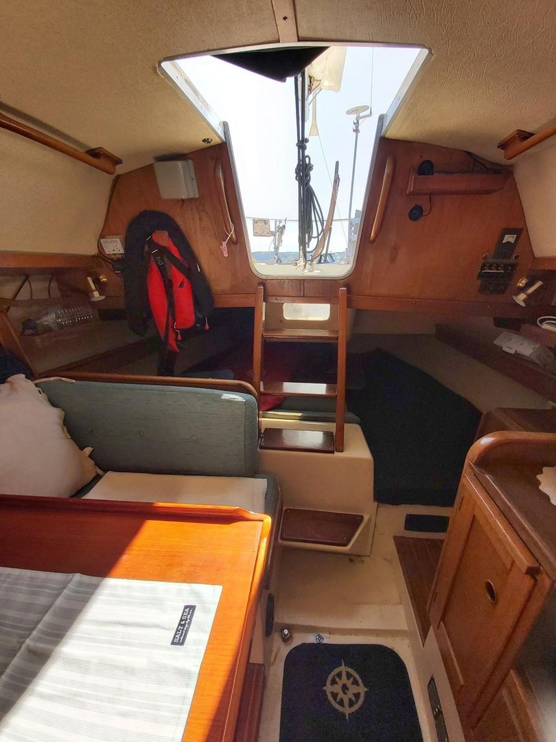Clean and well–maintained boat. The interior and cushions look good.