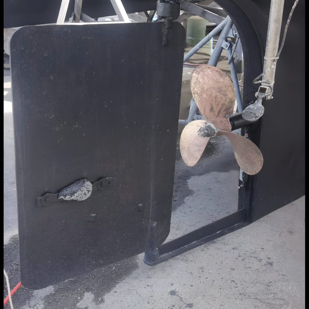 A large cockpit canopy, portable fridge, new start battery (2025), and an older but working gas stove with oven add comfort for longer trips. Through-hulls for drains and self-bailers are replaced.