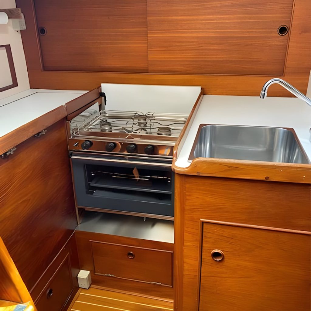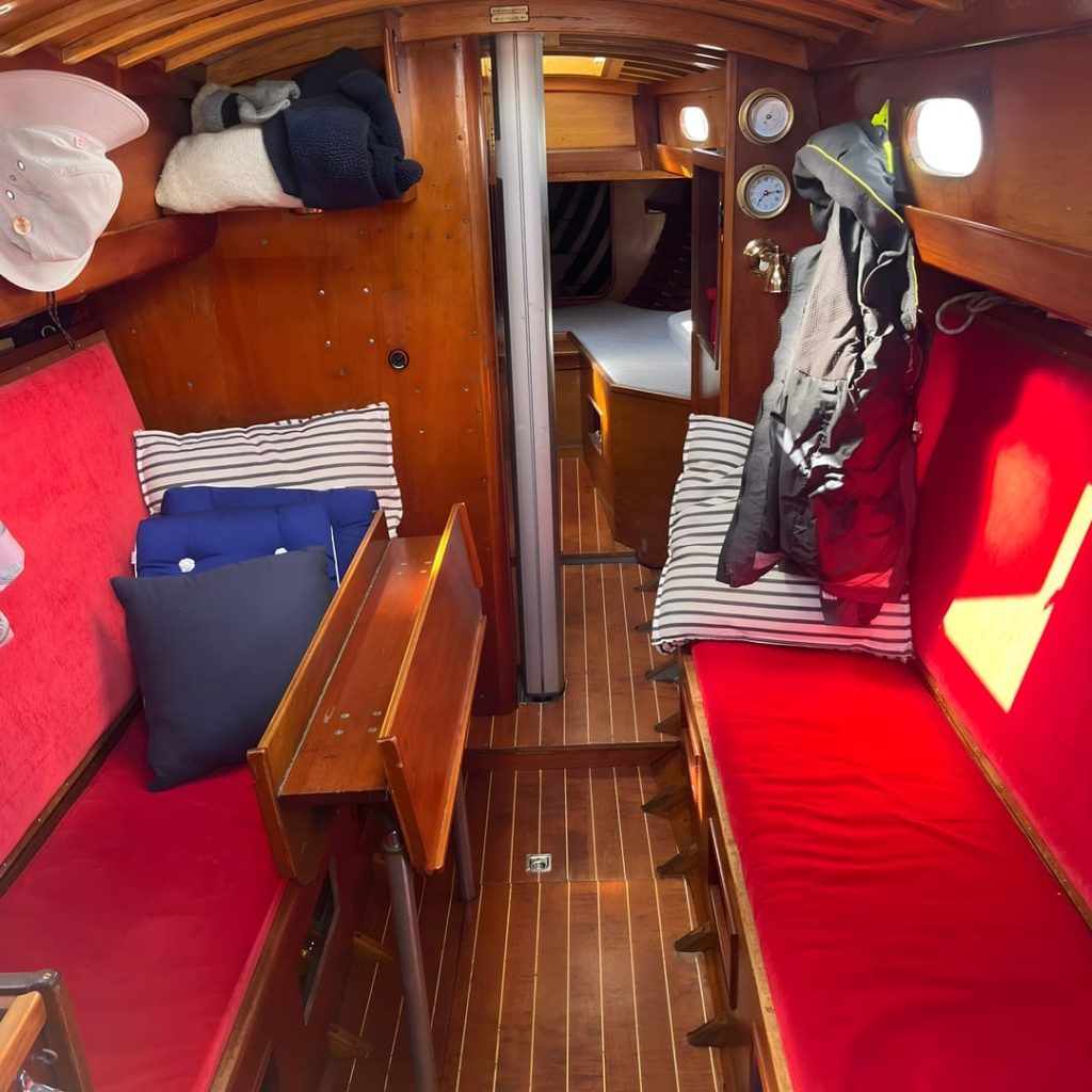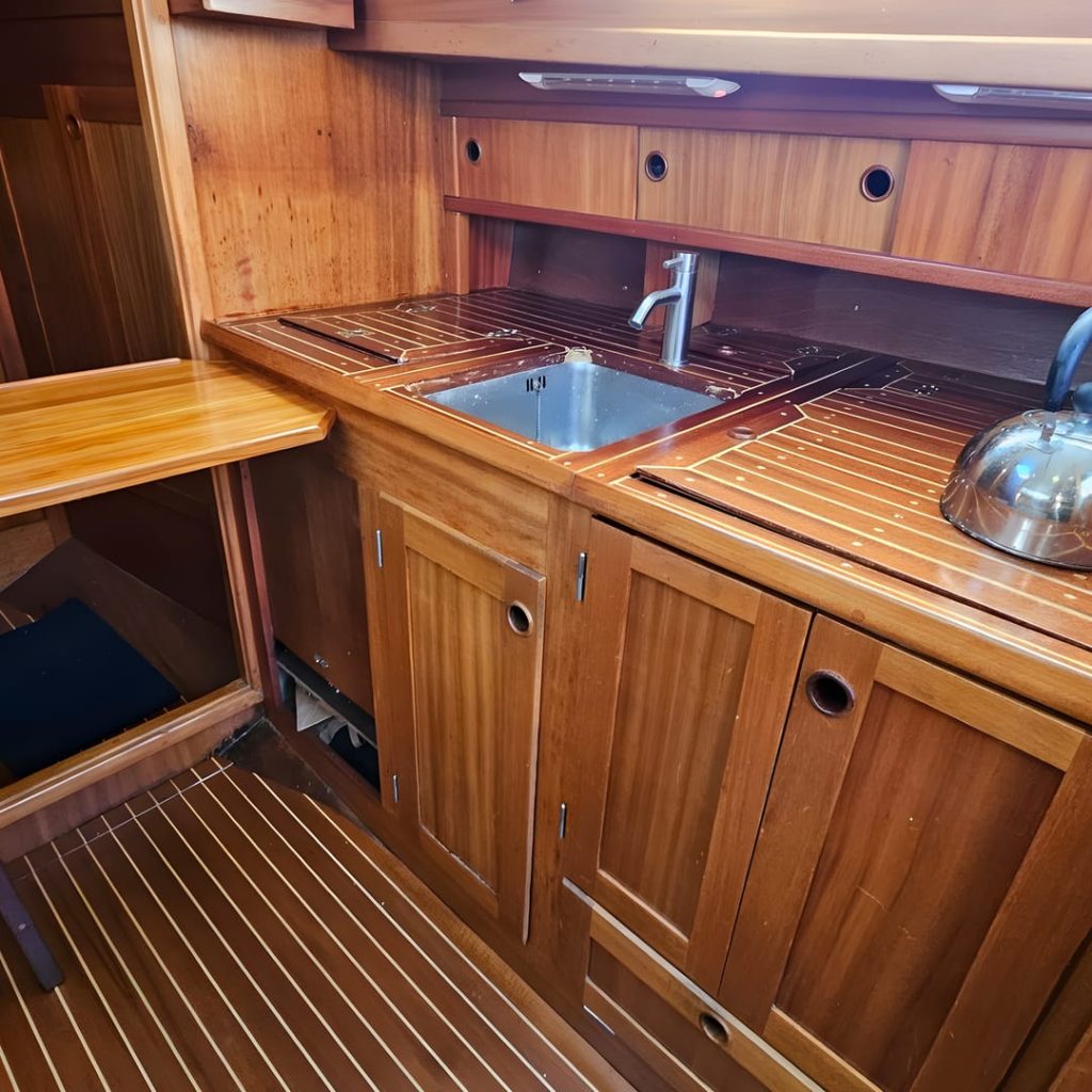 🍴 Comfort: Diesel heater, fridge (2022), pressurized water, gas stove with oven, new toilet (2023), teak cockpit, cockpit tent