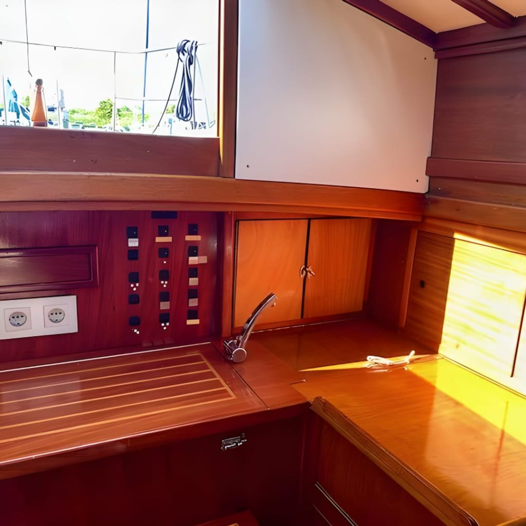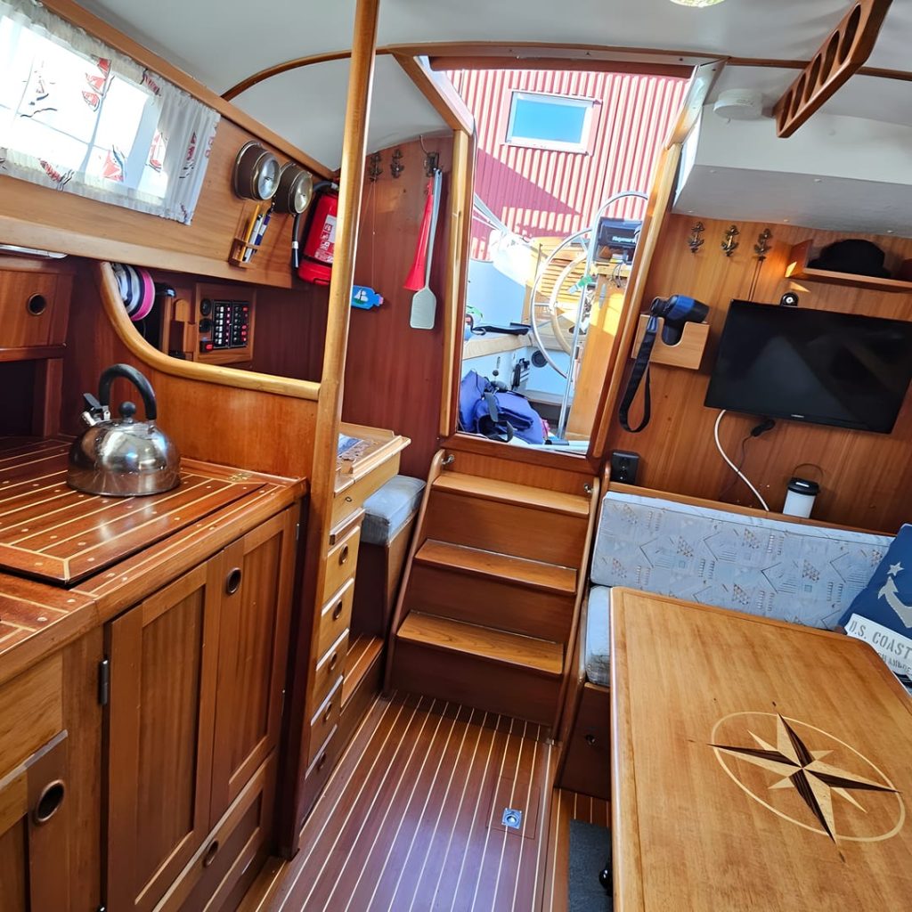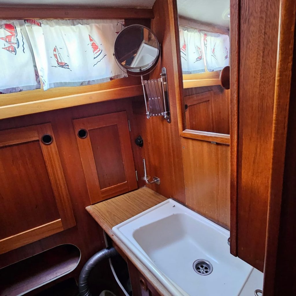 🍴 Comfort: Diesel heater, fridge (2022), pressurized water, gas stove with oven, new toilet (2023), teak cockpit, cockpit tent