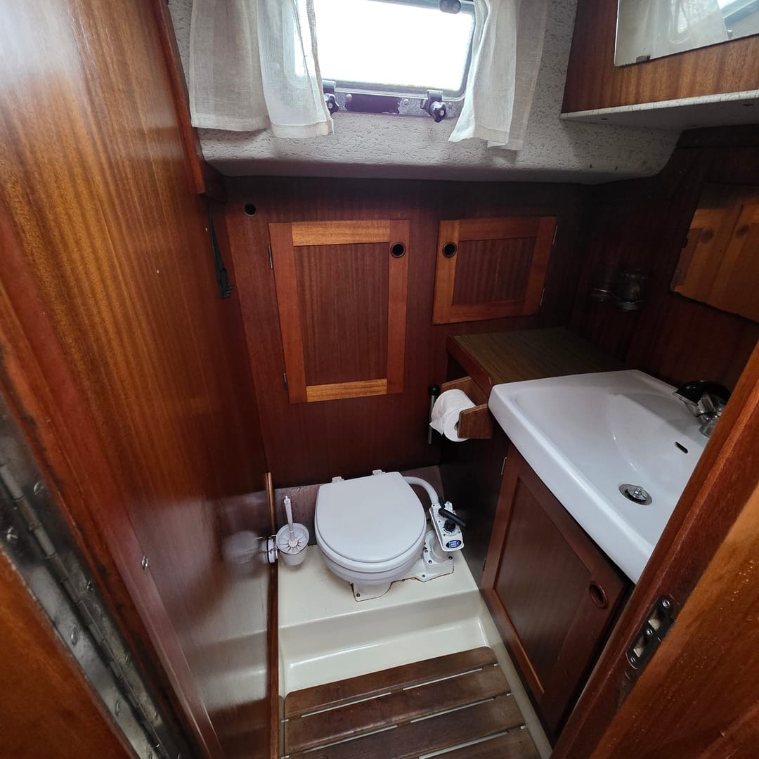 The Najad 343 is built for comfort, with berths for six and a spacious heads compartment. The classic layout is practical for family cruising or longer journeys.