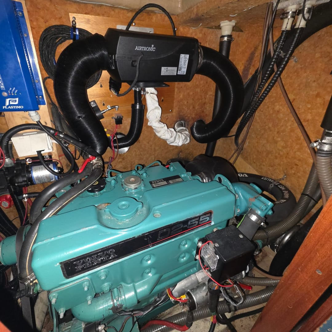 Recent upgrades include a new Eberspacher 4 kW diesel heater, fresh engine service, replaced anodes, and new antifouling. The bottom valves have been checked and replaced for reliability.