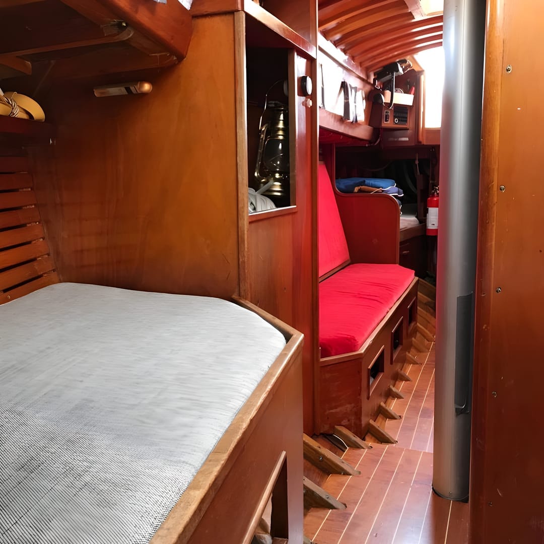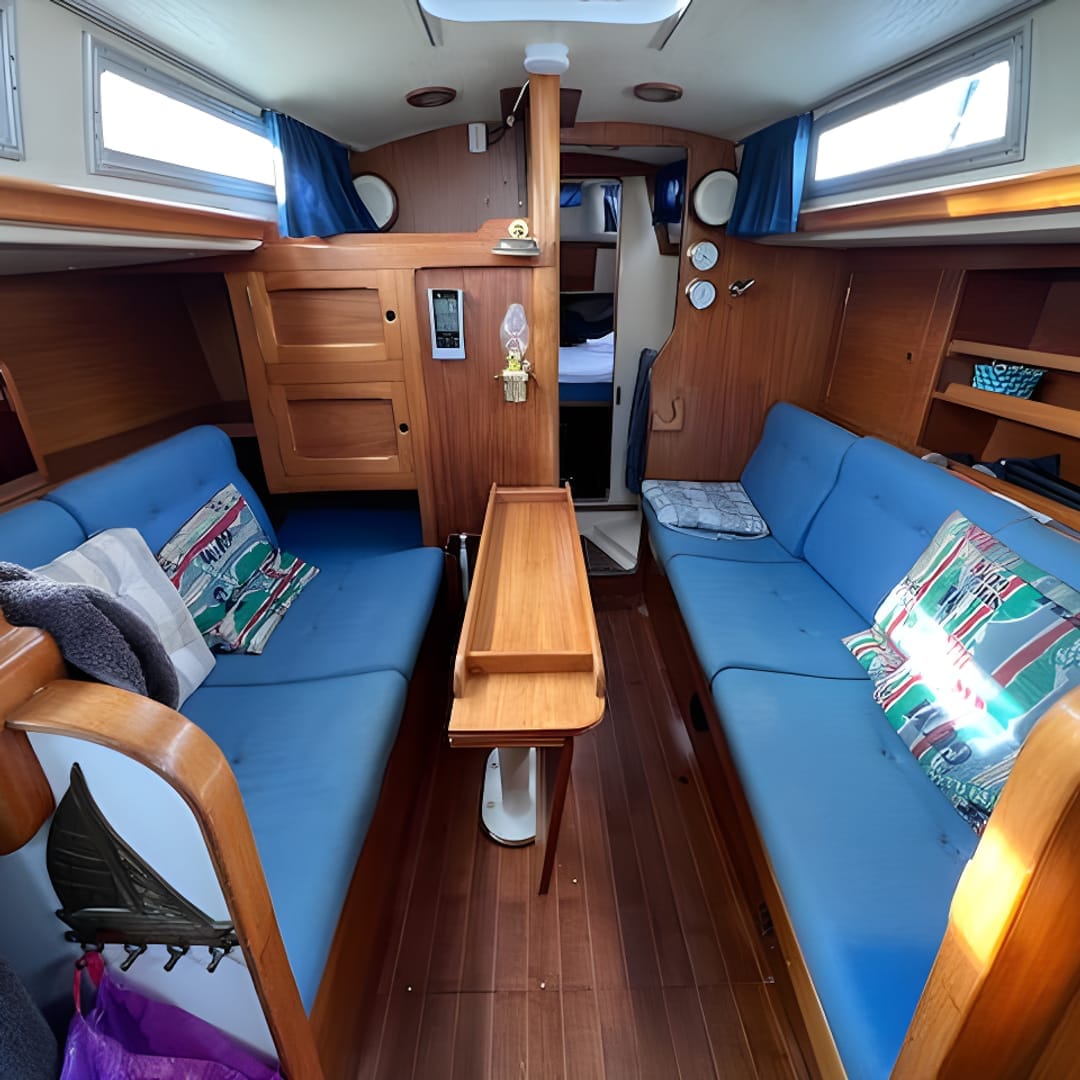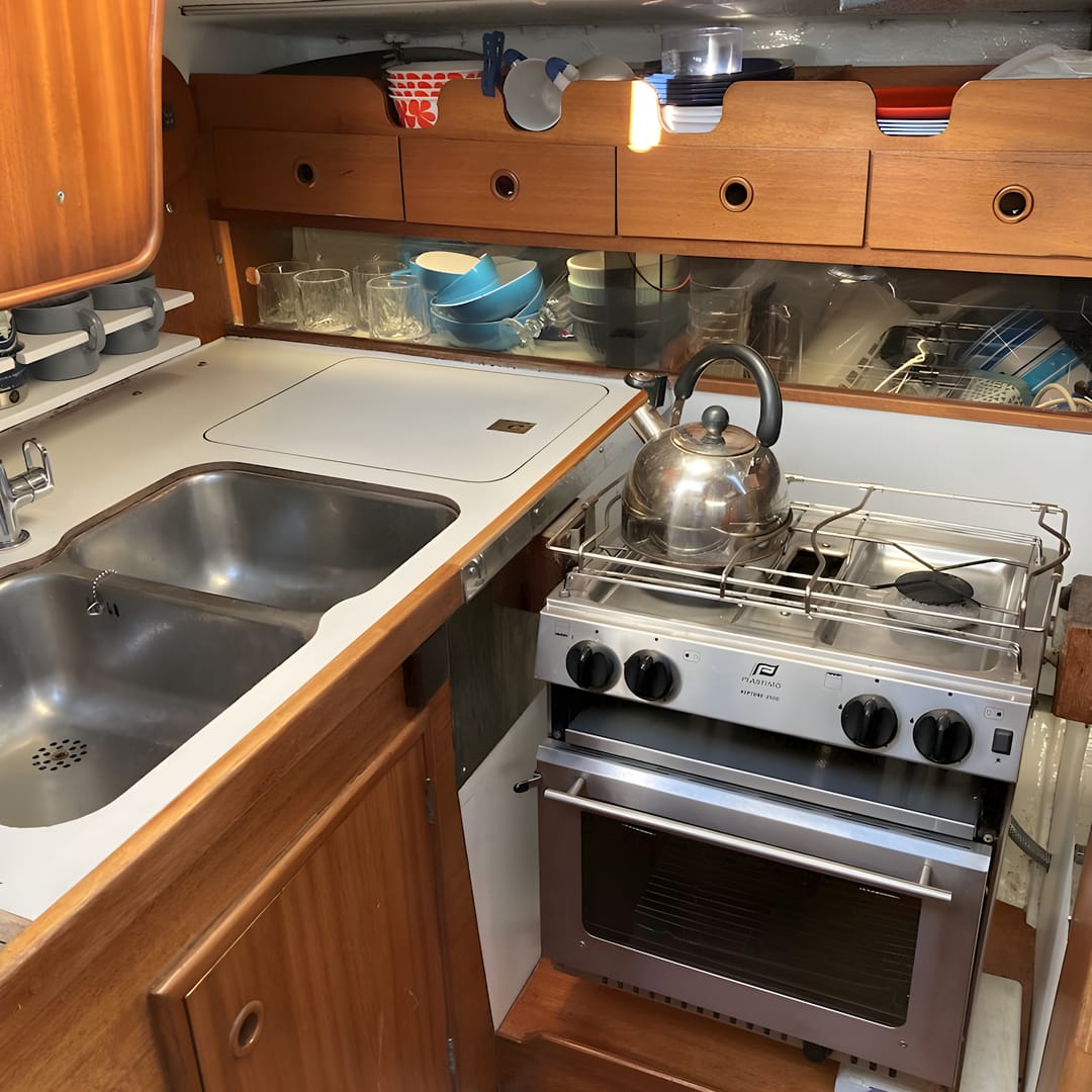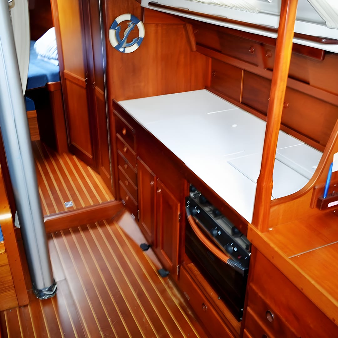 🍴 Comfort: Diesel heater, fridge (2022), pressurized water, gas stove with oven, new toilet (2023), teak cockpit, cockpit tent