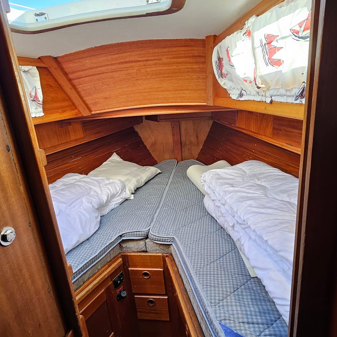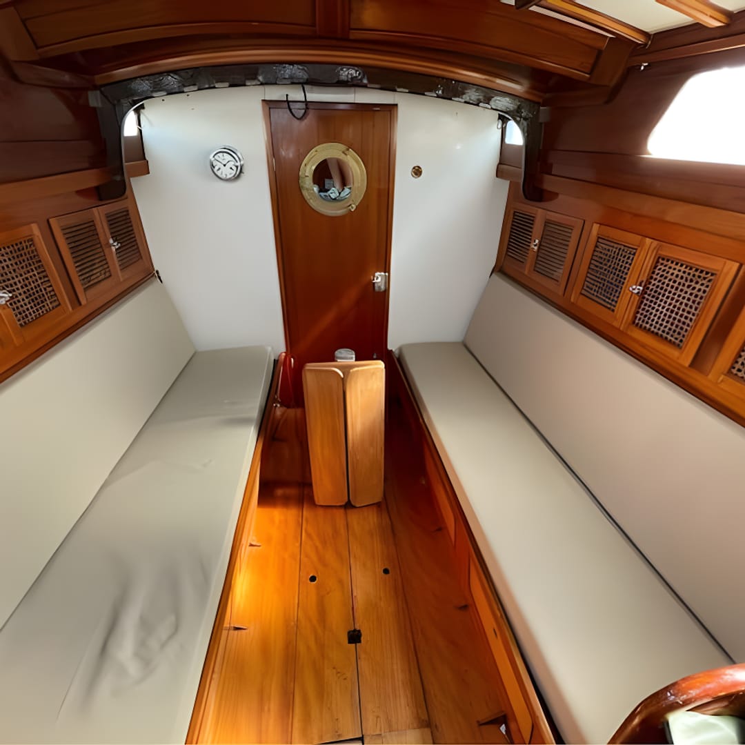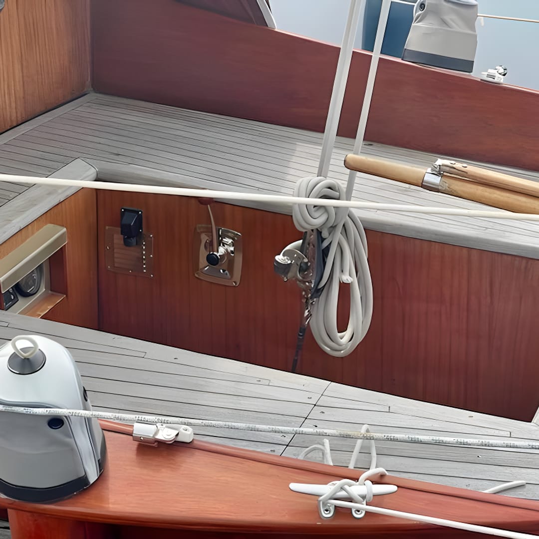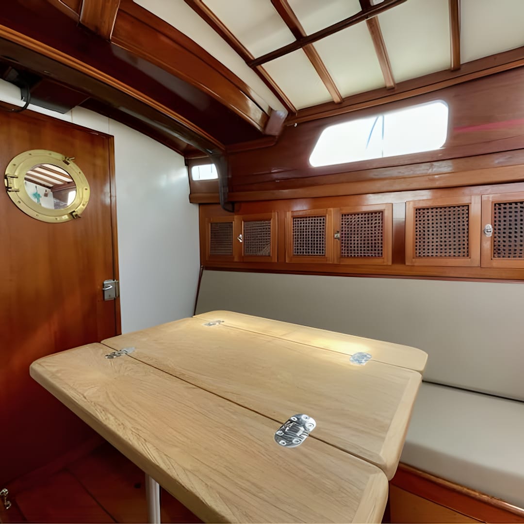 🍴 Comfort: Diesel heater, fridge (2022), pressurized water, gas stove with oven, new toilet (2023), teak cockpit, cockpit tent