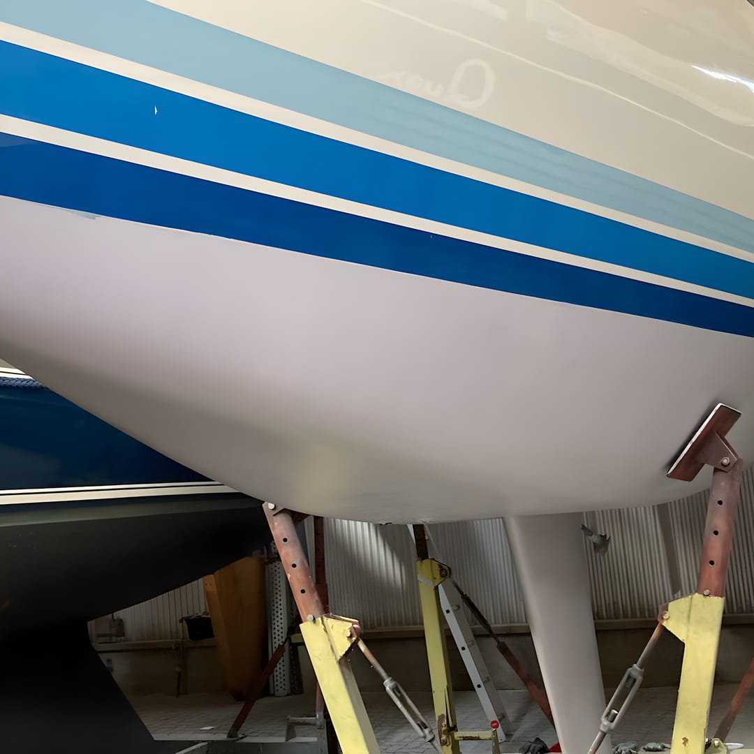 The X-102 MK2 was built in Denmark in 1986. This model is known for its balance between racing performance and comfort for cruising. The hull was fully renewed below the waterline in 2022, with annual light sanding and fresh paint each winter since.